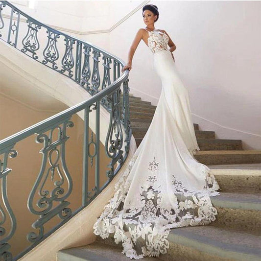 Straps Mermaid Beach Wedding Dresses - Sweep Train Boho Bridal Gowns - Custom Made Bride Dress (D18)(WSO1)