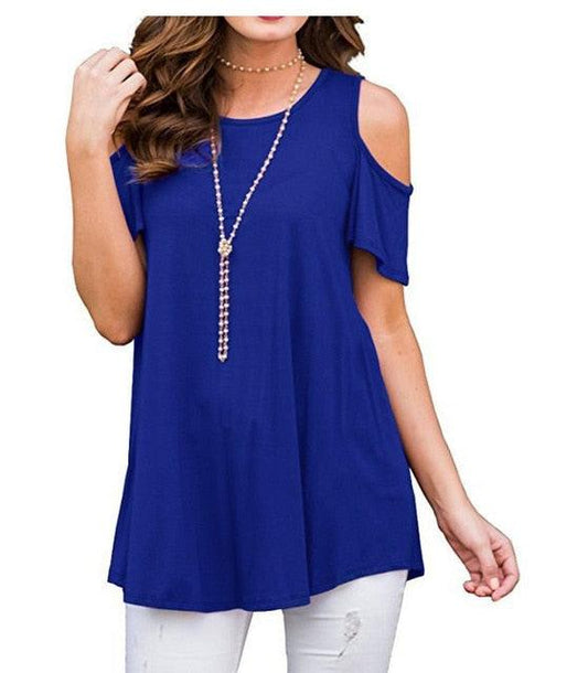 Gorgeous Off Shoulder Short Sleeve Top - Women Loose Sexy Solid Round Neck Top - Cotton Fashion Casual Lady T Shirt (D19)(TB2)(BT1)