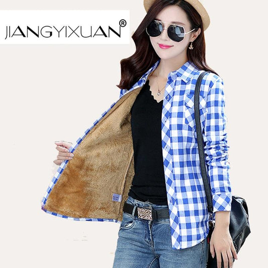 Warm Lattice Women Cotton Thickening Jacket Plaid Shirt - Blouses Shirts Female Tops (D19)(TB4)