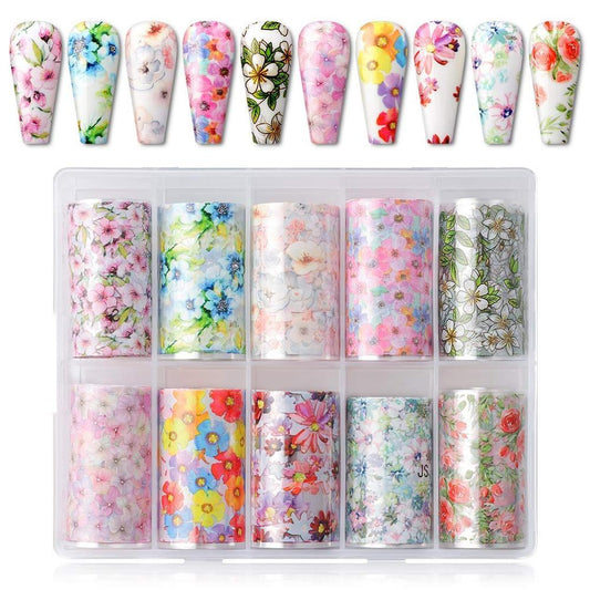 Nail Art Foil Transfer Stickers Nail Art Supplies Foil Transfers 10 Rolls Nail Decals Nail Extension Gel Art (D85)(N7)