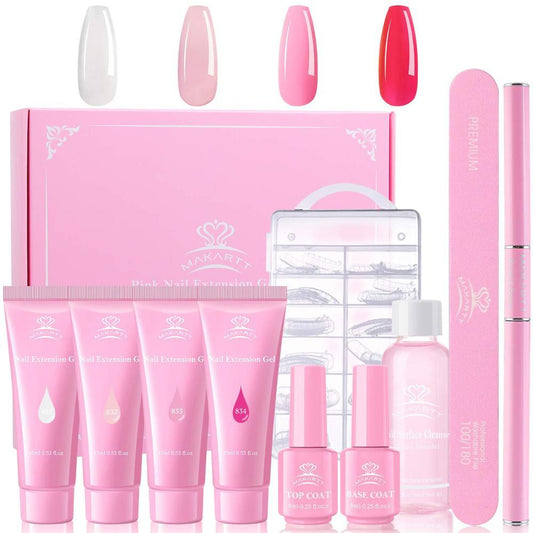 Pink Nail Extension Gel, Poly Beginner Nail Gel Kit with Slip Solution Builder Gel Kit Nail Enhancement Gel All-in-one (D85)(N1)(1U85)