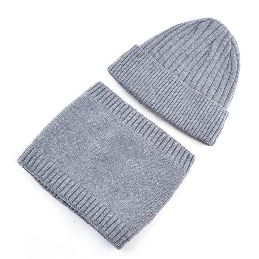 Winter Warm Beanie Scarf Set - Solid Color Knitted Beanies Sets (D17)(MA8)