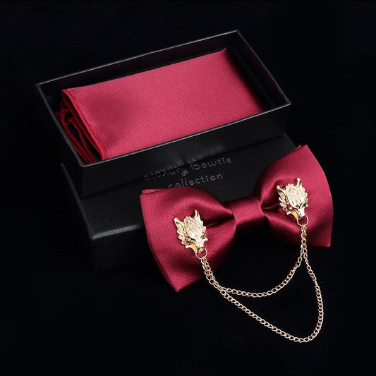 Great Metal Golden Wolf Two Layer Neck Bowtie Solid Bow Tie - Men's Adjustable Bowtie (D17)(MA2)