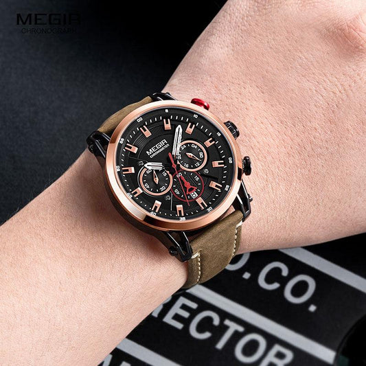 Leather Strap Leisure Quartz Watches - 24 Hours Chronograph 3atm Waterproof Army Sports Wristwatch (D84)(MA9)