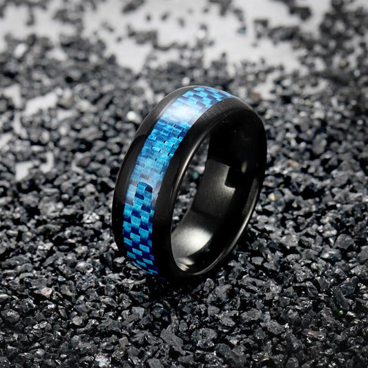 New Men's Blue Carbon Fiber Ring Tungsten Engagement Ring - Luxury Finger Ring (D83)(MJ1)