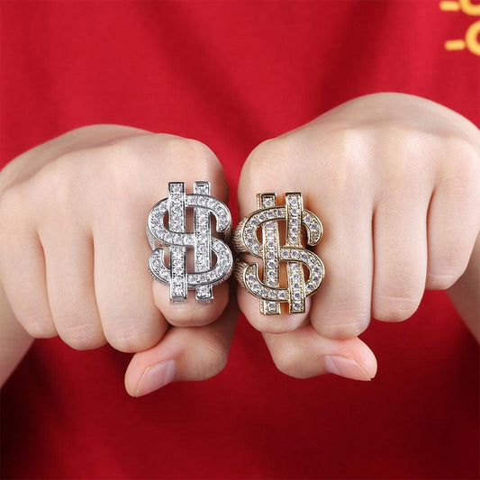 Great Fashion Rock Iced Out Bling Gold Silver Color US Dollar Sign Rings - AAA Cubic Zircon (D83)(MJ1)