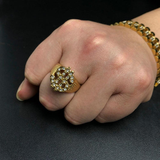 Gold Color Stainless Steel Dollar Sign Ring - Hiphop Rock Style Clear Stone Bling Ring (D83)(MJ1)