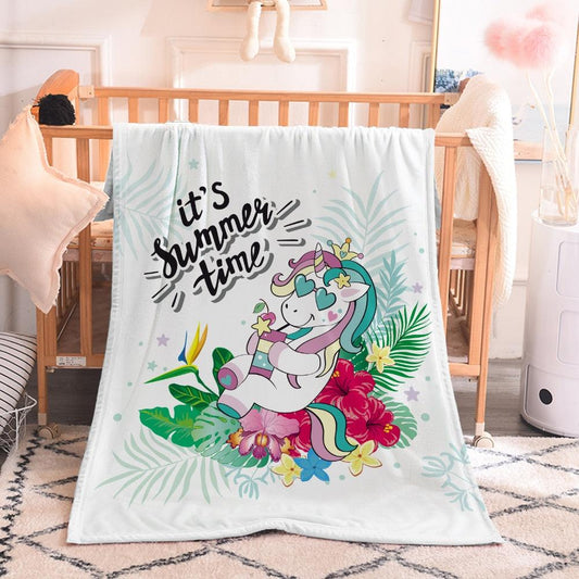 Colorful Unicorn Cartoon Print Flannel Cute Girl Sofa Napping TV Blanket Bedroom Decoration Blanket (D63)(4BM)