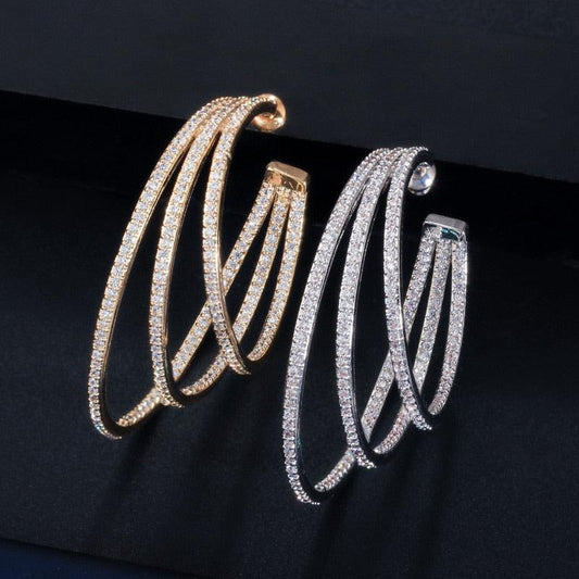 3 Circle Bling Cubic Zirconia Pave Luxury Yellow Gold Color Big Round Geometric Hoop Earrings (D81)(2JW3)