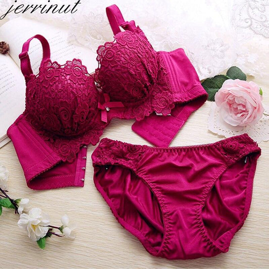 Gorgeous Women Fashion Wireless Lace Bra Set - Cup A B Underwear - Female Plus Size Lingerie Sets (D27)(TSB4)