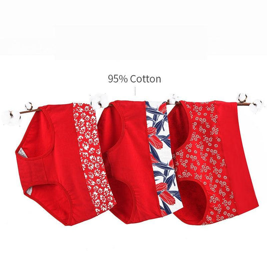 Wonderful 3pcs/Lot High Waist Women's Big Size Cotton Print Panties - Breathable Briefs Underwear Lingerie (D28)(TSP2)