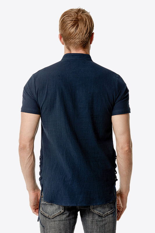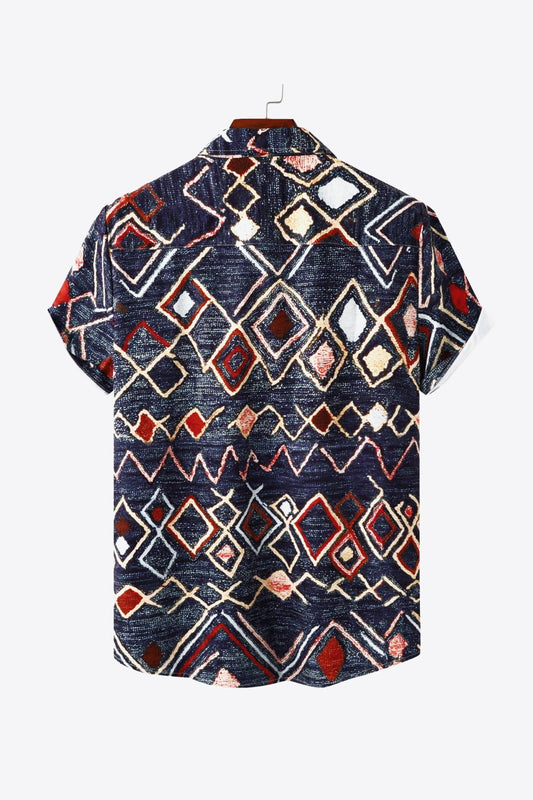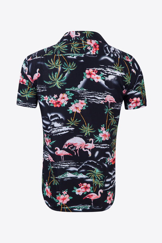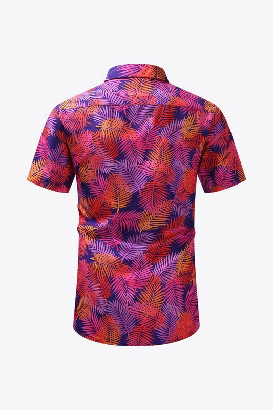 Botanical Print Button-Front Short Sleeve Pocket Shirt