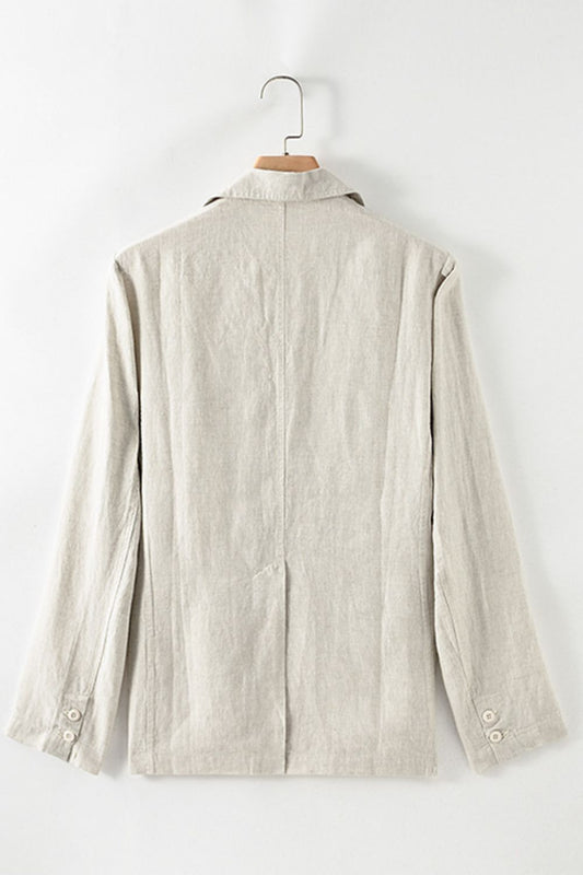 Buttoned Johnny Collar Long Sleeve Linen Blazer with Pockets
