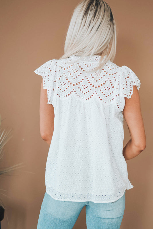 Decorative Button Notched Neck Ruffle Shoulder Blouse