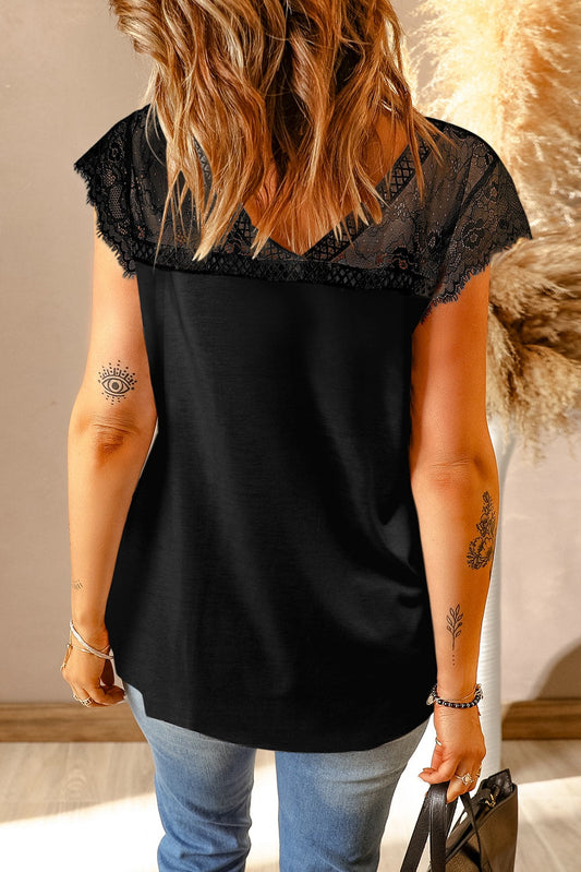 Swiss Dot Decorative Button Short Sleeve Blouse