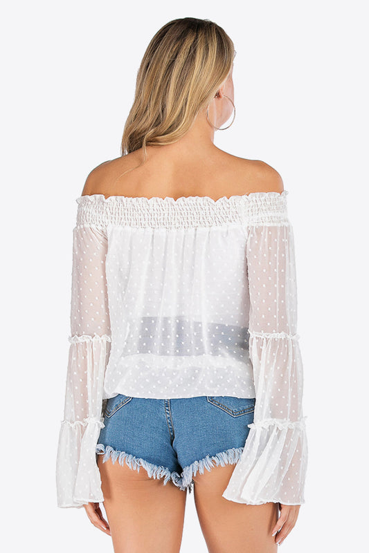 Plus Size Floral Off-Shoulder Flare Sleeve Blouse