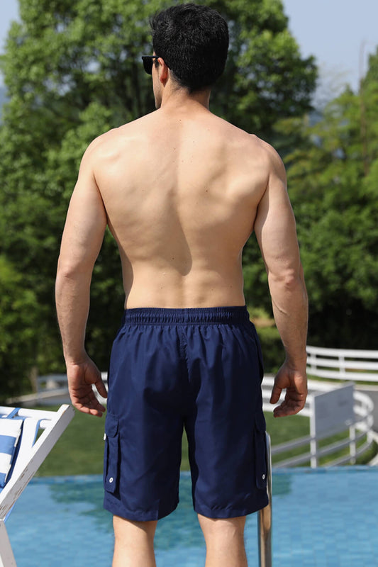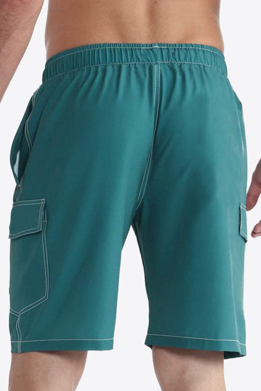 Contrast Stitching Drawstring Waist Cargo Shorts