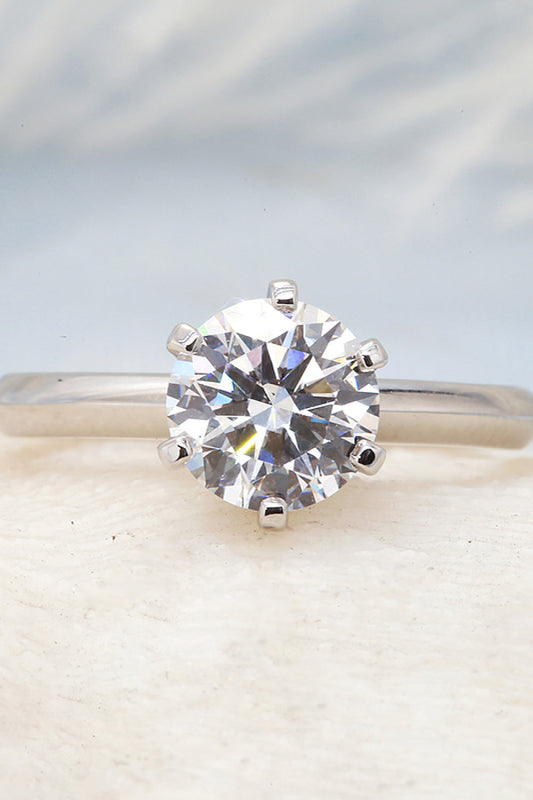 3 Carat Moissanite Rhodium-Plated Side Stone Ring