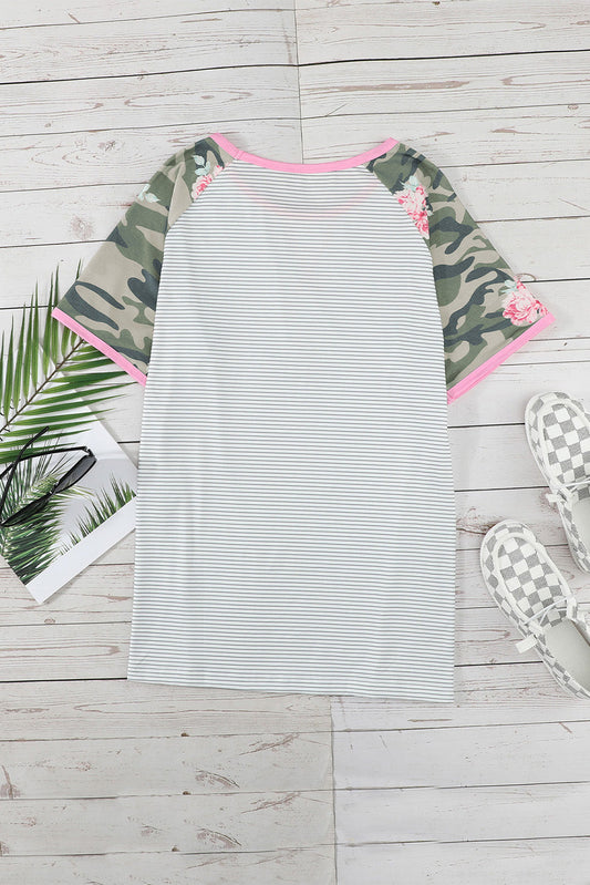 Letter Graphic Cuffed Sleeve Round Neck T-Shirt