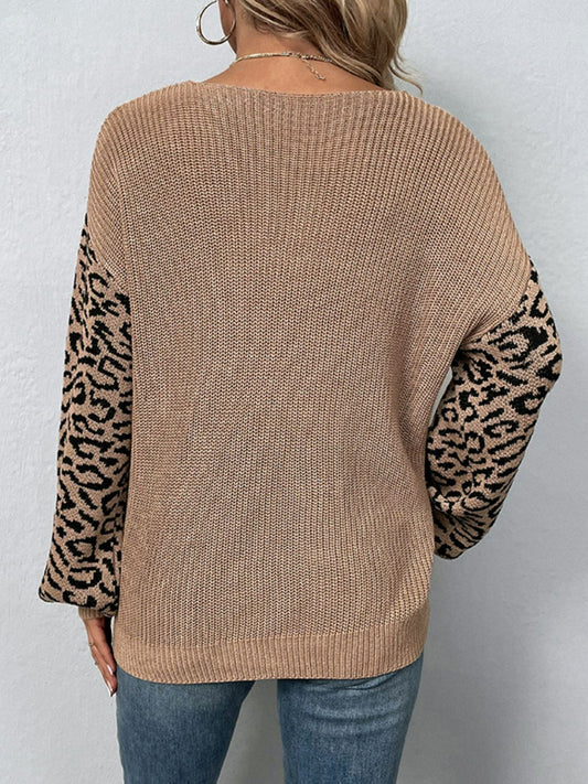 Striped Drop Shoulder V-Neck Pullover Sweater