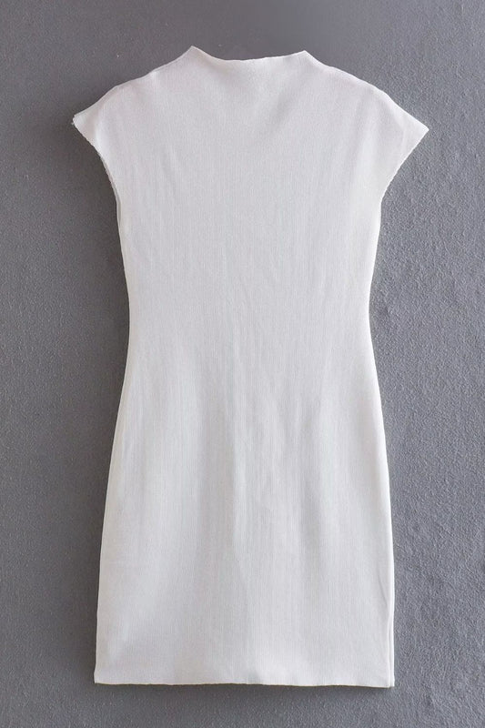 Decorative Button Petal Sleeve Drawstring Waist Dress