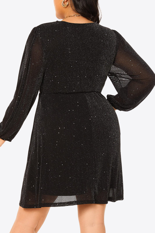 Plus Size Glitter Balloon Sleeve Empire Waist Dress