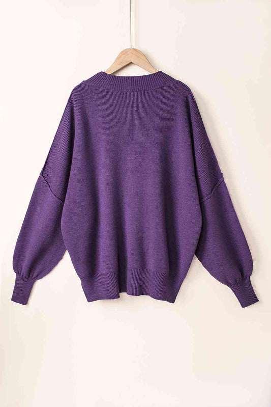 Round Neck Contrast Color Dropped Shoulder Sweater