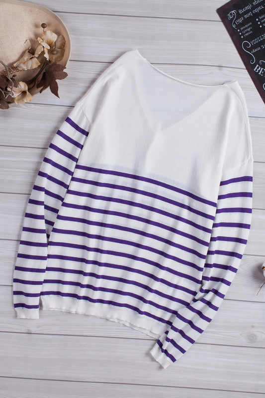Printed Round Neck Ribbed Long Sleeve Sweater