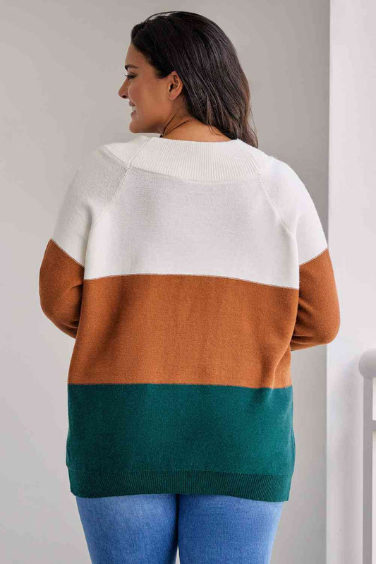 Plus Size Color Block Long Sleeve Sweater