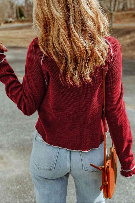 Zenana Breezy Days Plus Size High Low Waffle Knit Sweater