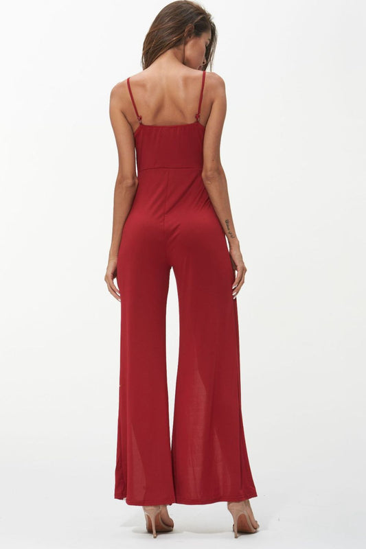 Contrast Trim Split Spaghetti Strap Jumpsuit