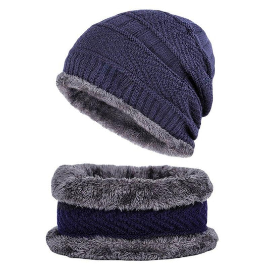 Unisex Knitted Hat Fashion Winter Thick Warm Fleece Lined Neck Warmer Scarf Set (2U103)