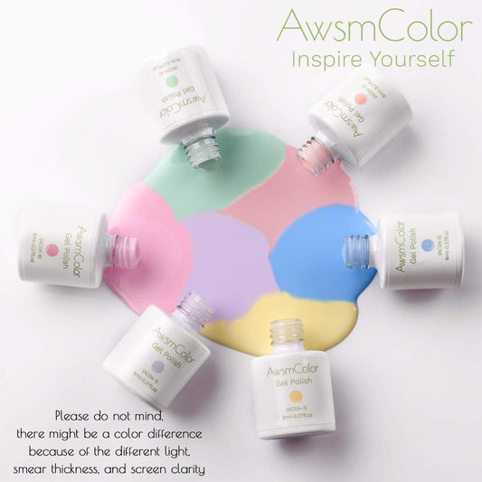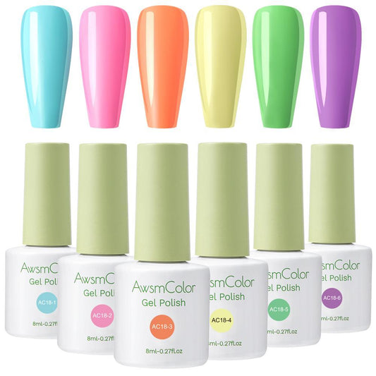 Nail Gel Polish Kit, Gel Polish Set Spring Summer Yellow Green Purple Colors 8ML UV Gel Polish Base Coat (N1)(1U85)