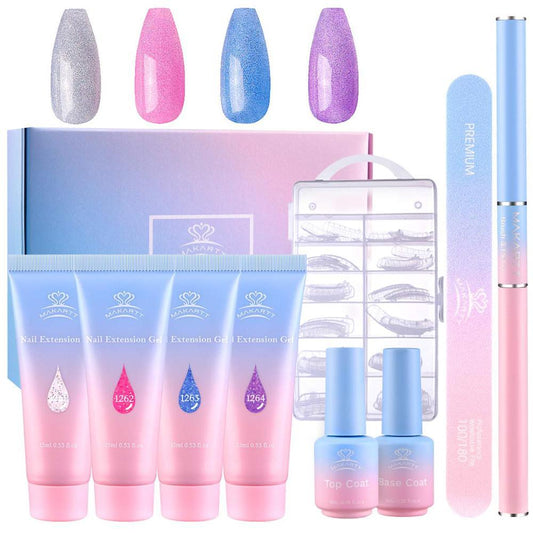 Jelly Glitter Poly Nail Gel Kit - Translucent Glitter Builder Nail Extension Gel Nail Enhancement Set (N1)(N4)(1U85)