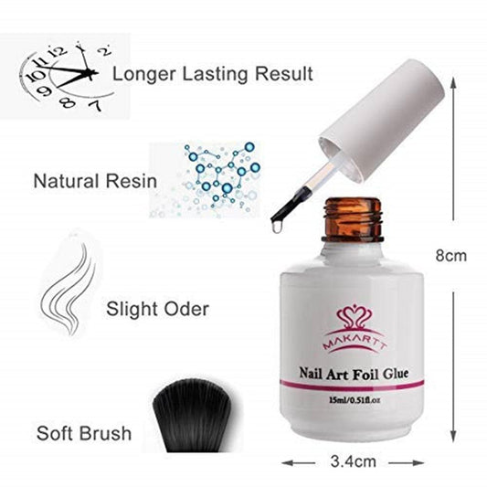 Nail Art Foil Glue Gel for Foil Stickers Nail Transfer Tips Manicure Art DIY 15ML UV LED Lamp Required Soak Off (N1)(N2)(1U85)