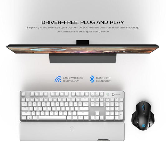 Great Bluetooth Wireless Mechanical Gaming Keyboard with USB Receiver Red Switches for Android / iOS / Windows PC (CA1)(1U52)