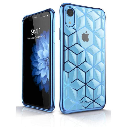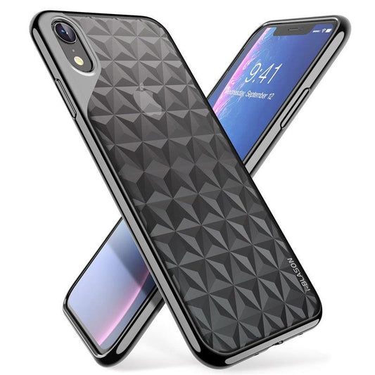 iPhone XR Case 6.1" Cube Series Slim Crystal Clear Flexible TPU Protective Cover with Geometric 3D Diamond Pattern (RS6)(1U50)