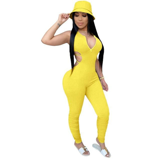 Gorgeous Women's Sexy Jumpsuit Rompers - Elegant Skinny One Piece Long Pleated V-neck Overalls (1U33)