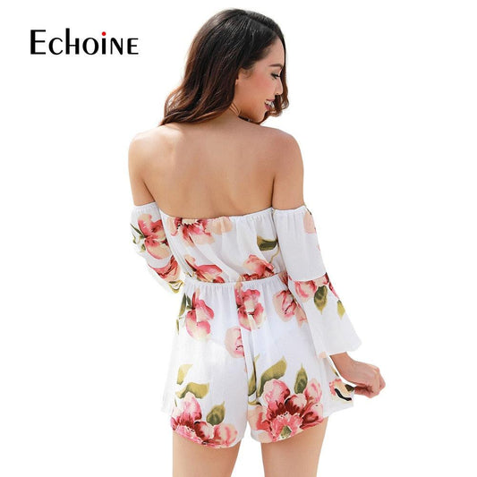 Sexy Fashion Floral Print Women Jumpsuit - Summer Beach Off Shoulder Casual Jumpsuits (1U33)