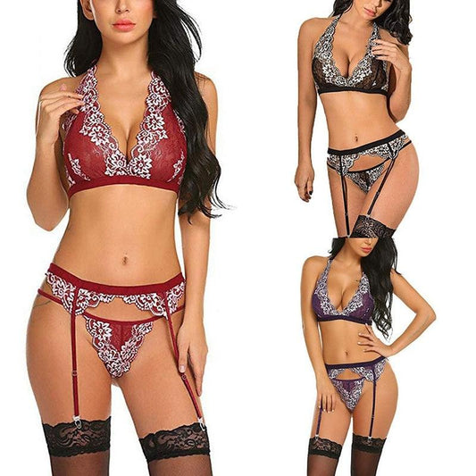 Exotic Women's Bra Set - Sexy Uniform Temptation Suit - Lady Perspective Lace Three Point Suit (1U29)