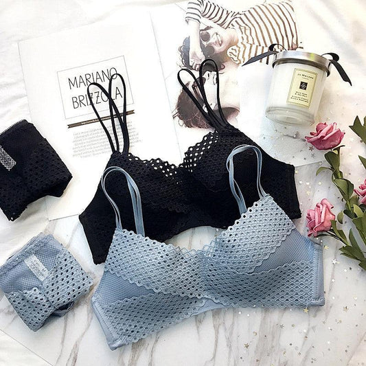 Fashion Women Underwear Sexy Hollow Striped Lace Seamless Push Up Bra Set - Comfortable High Quality Lingerie (TSB4)