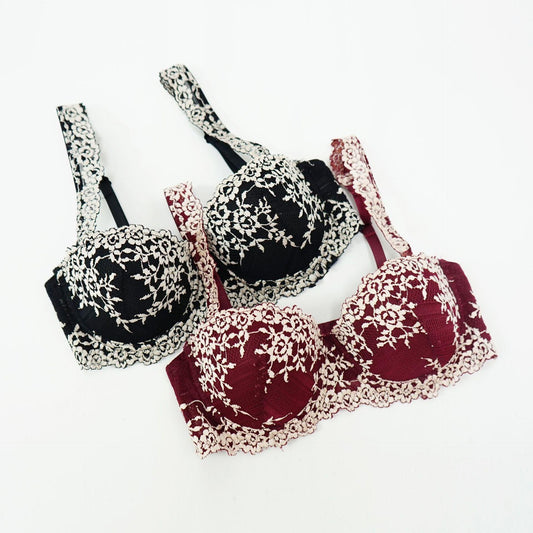 Great Europe Women Underwear Lace Embroidery 1/2 Push Up Bra Set - Comfortable Adjustable Large Size B C Cup Brassiere Set (TSB4)
