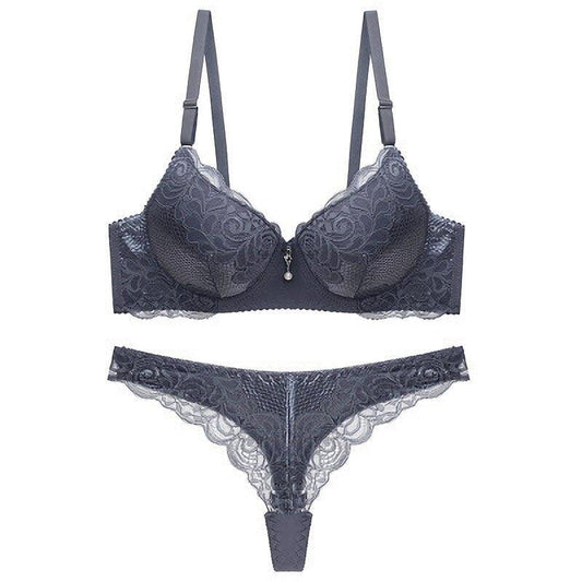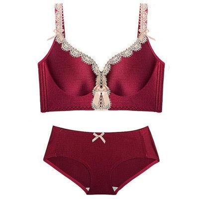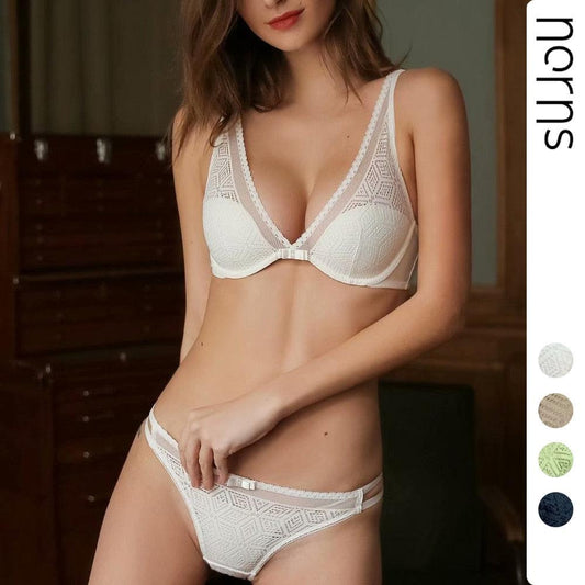 Trending Sexy Lace Thin Bra + Panties Sets - Women Bra With Steel Hollow Underwear - Gathered Deep V Bra Set (TSB4)