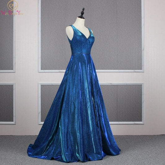 Royal Blue Silver Evening Dresses V Neck Keyhole A Line Prom Formal Gowns Elegant Party Crystal Dress Wso3wso2wso5wso4