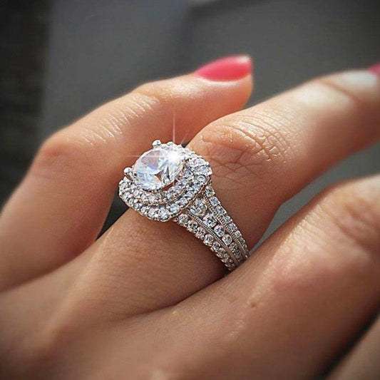 Luxury Silver Color Engagement Ring with Rhinestone Jewelry Wedding Band Anniversary Gift (7JW)1(2U81)