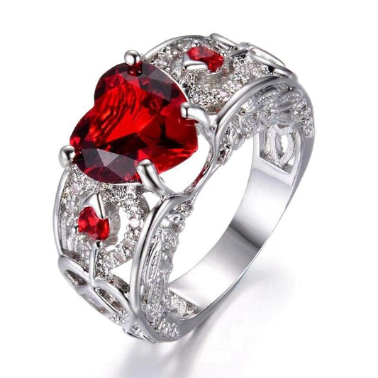 Red Rhinestone Heart Shape Silver Color Wedding Rings for Women - Luxury Ring- Engagement Accessories (7JW)(2U81)