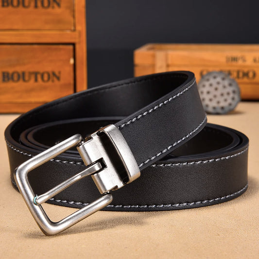 Fashion Black Belt For Men Cowskin Genuine Leather Belt 3.0 cm Ancient Silver Buckle High Quality Male Black Strap For Jeans