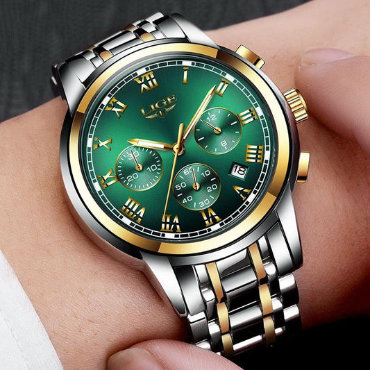 Fashion New Men's Watches - Classic Design Green Dial Business Watch - Waterproof Full Steel Quartz (2MA1)(F84)