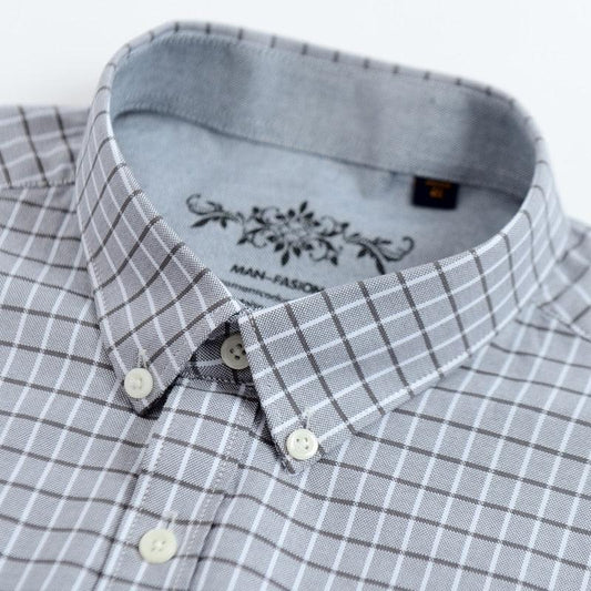 Elegant Men's Plaid Checked Oxford Button-down Shirt - Single Patch Pocket Casual Thick Long Sleeve Shirts (TM1)(T2G)