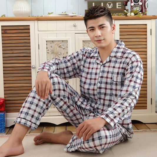 Spring Autumn Winter Men 100% Cotton Pajamas Sets - Top & Pants Casual Home Clothing Sleepwear (TG7)